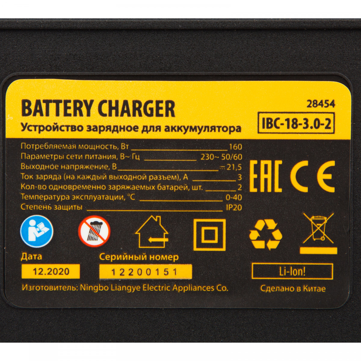 Устройство зарядное для аккумуляторов IBC-18-3.0-2, Li-Ion, 18В, 3.0 А, для двух батарей Denzel