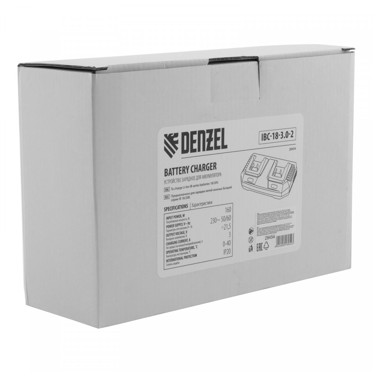 Универсальное зарядное устройство Denzel IBC-18-3.0-2 28454 подходит ко всем Li-Ion аккумуляторам на платформе Denzel 18 В. Быстрое зарядное устройство обеспечивает высокую скорость зарядки сразу двух батарей и гарантирует превосходную работу вашего инструмента.