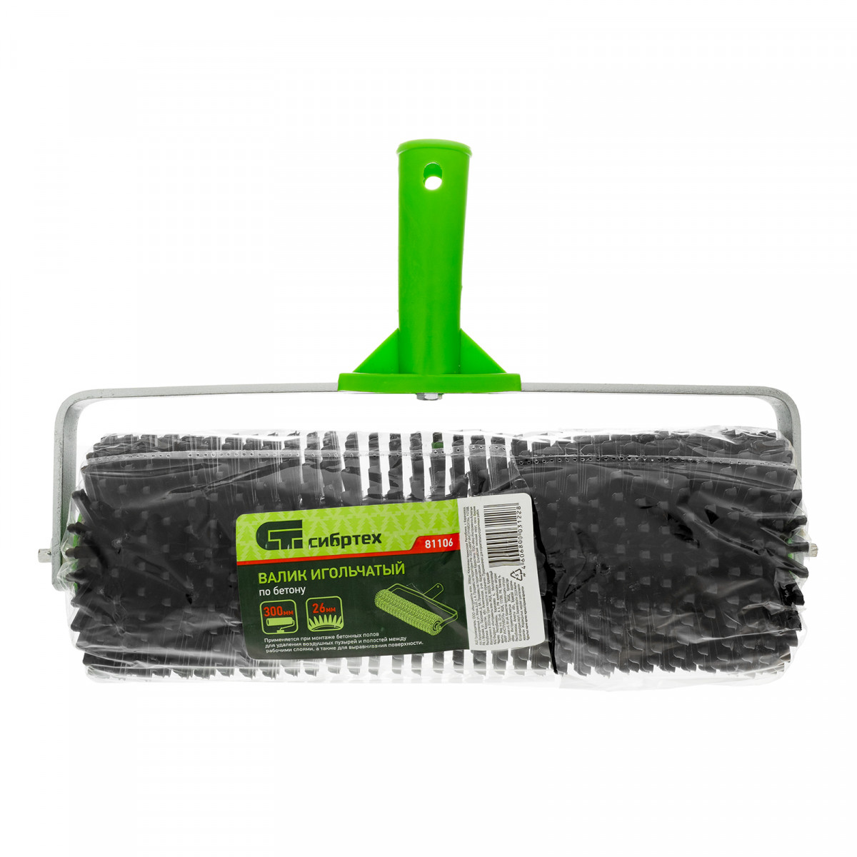 Игольчатый валик по бетону Сибртех 81106 шириной 300 мм применяется для заливки бетонных стяжек пола и необходим во время проведения ремонтных и строительных работ. Иглы длиной 26 мм позволяют качественно выровнять поверхность и удалить воздушные пузыри.