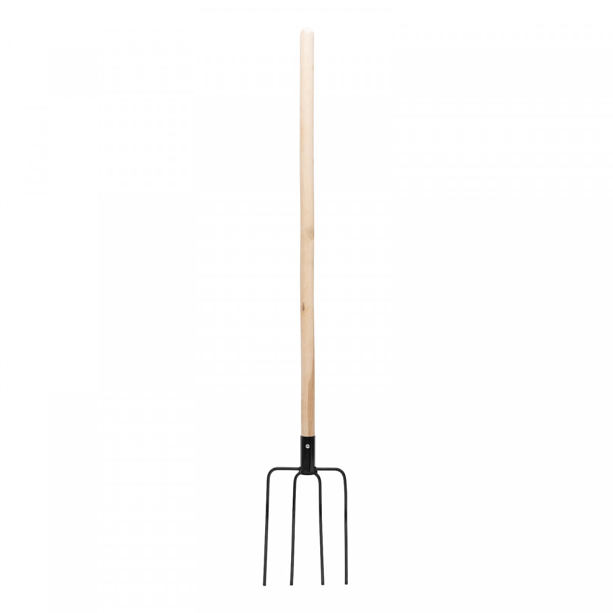 - Комфортная работа — деревянный черенок обеспечивает удобный хват, а рога с острыми концами надежно захватывают траву и сено.