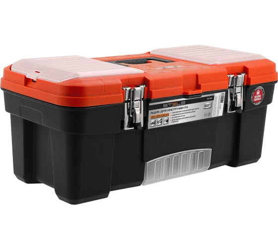 Ящик для инструмента с металлическими замками STELS 22", 560x285x235 мм 90748 — альтернатива коробке для инструментов. В нем можно расположить ручной инструмент, крепежи, хозяйственные мелочи, а также рыболовные снасти.В крышке имеются встроенные органайзеры, на дне - выкидной лоток с отсеками для мелких деталей, что увеличивает функциональность ящика. Его удобно брать в поездки, также ящик пригодится дома, на даче или в гараже.