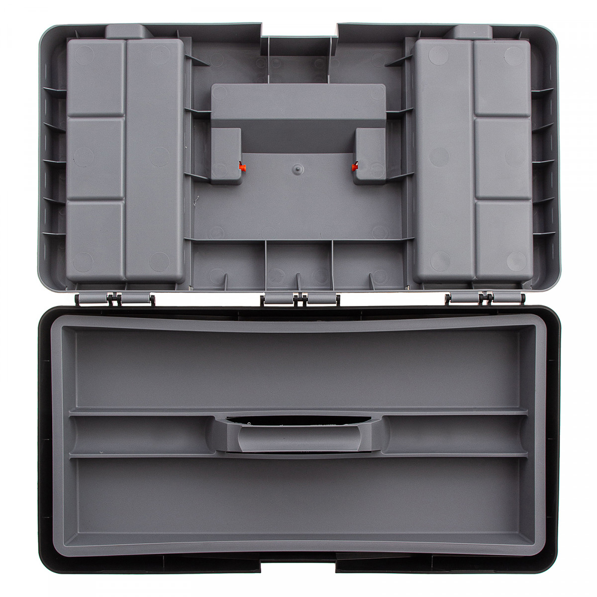 Съемный лоток позволяет эффективно организовать хранение разнородных инструментов.