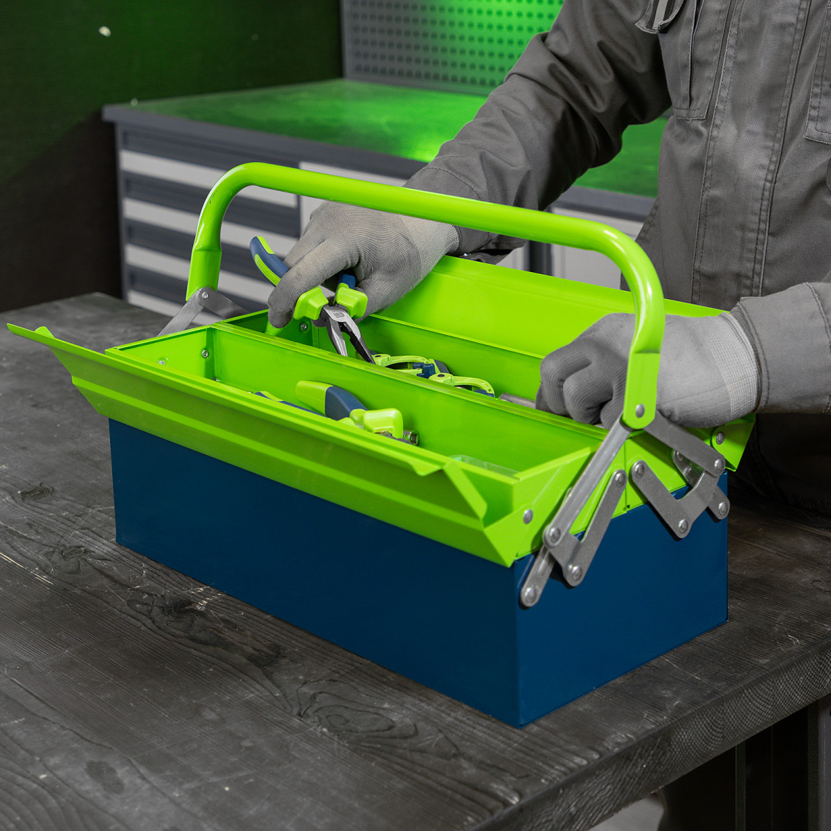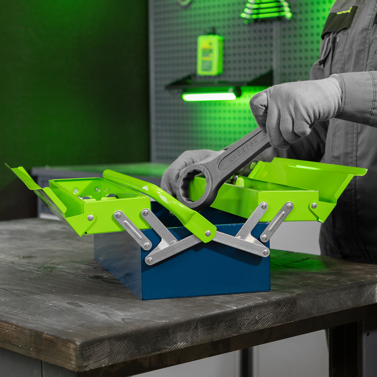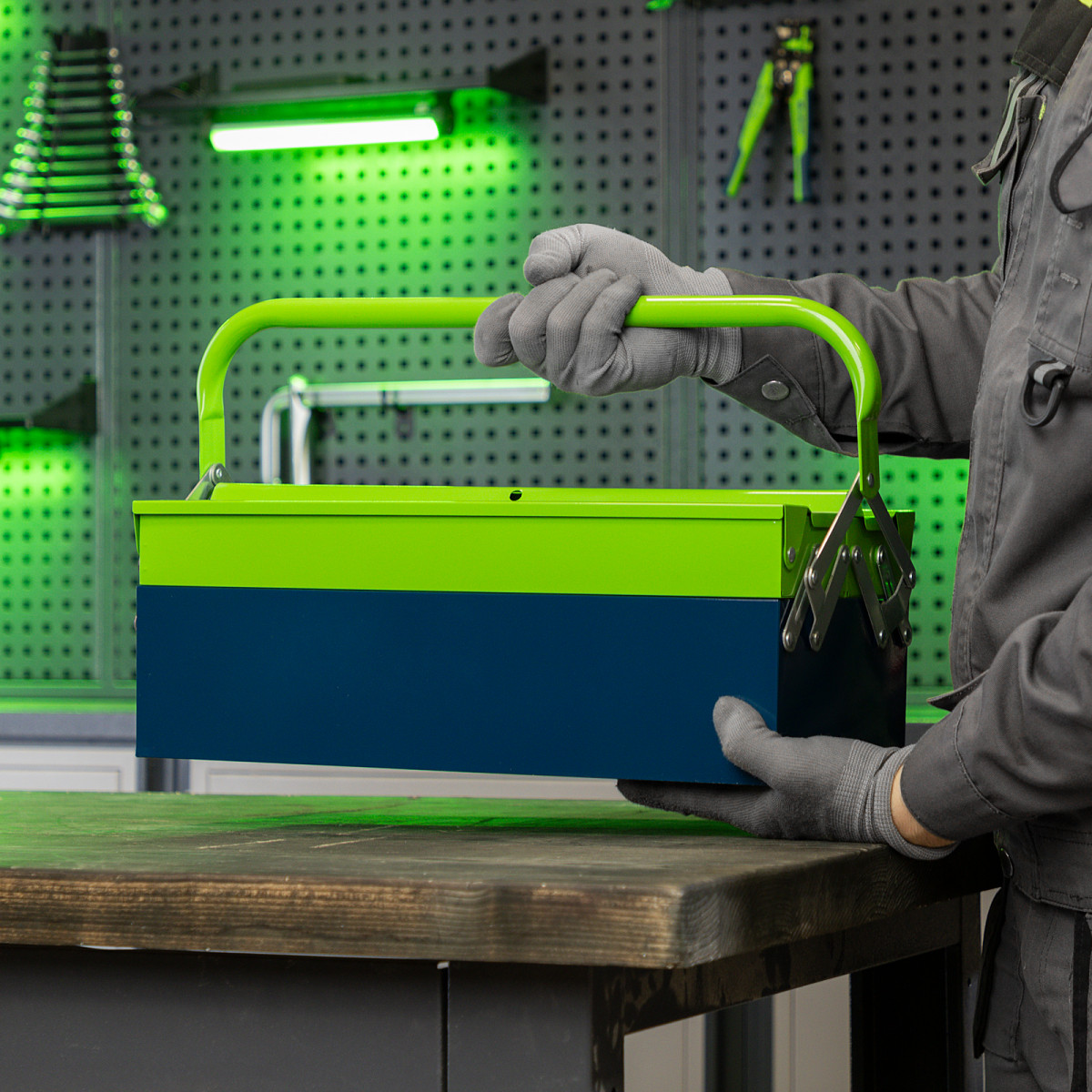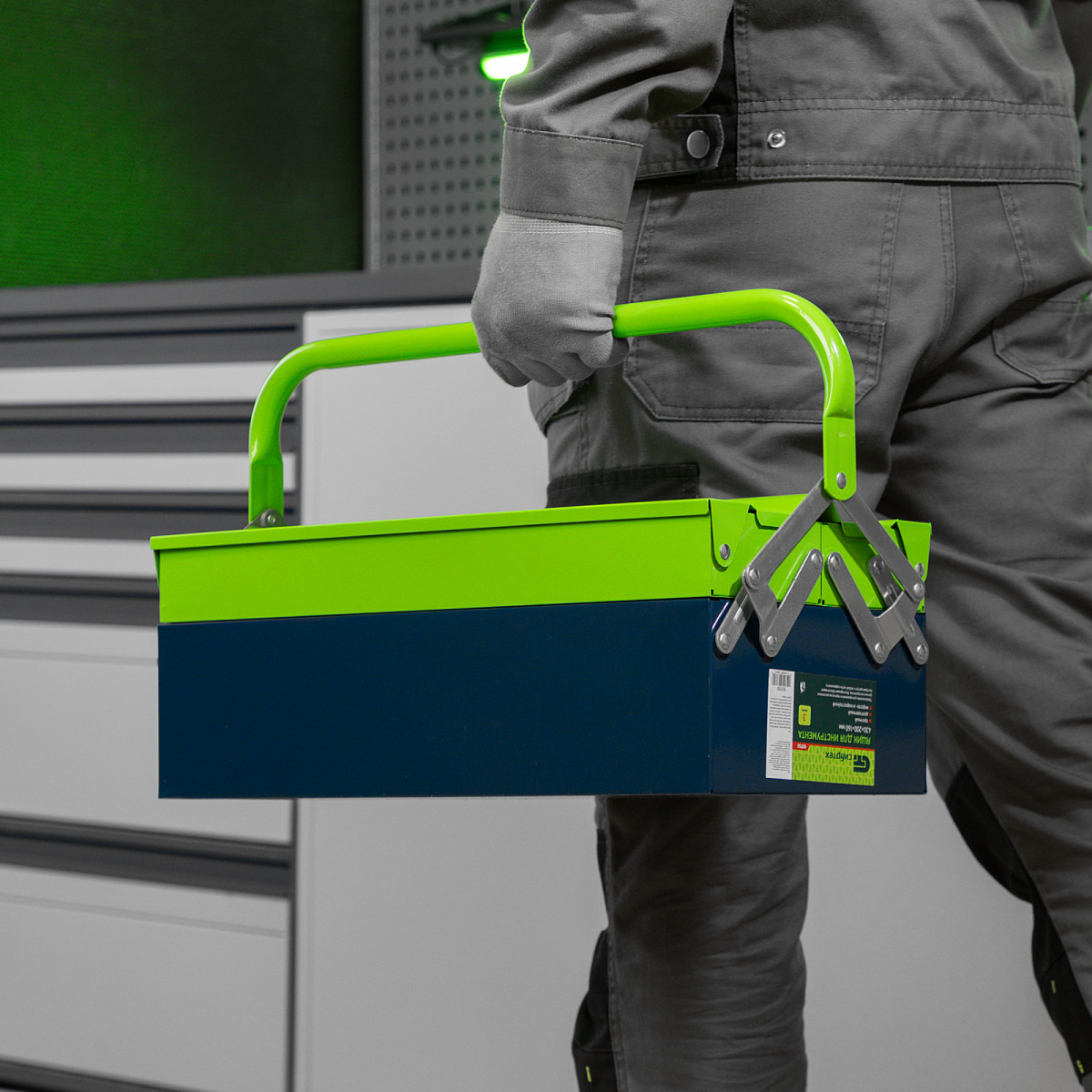 • Поворотная ручка — удобно размещать и извлекать инструменты.