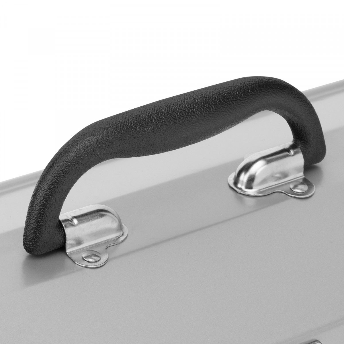 - Крепкий замок — находящиеся в ящике предметы не рассыпятся во время хранения или транспортировки.