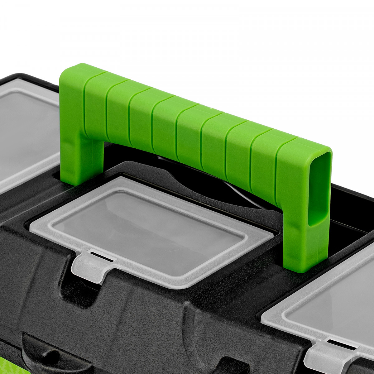 - Комфортная транспортировка — удобная рукоятка облегчает перемещение даже максимально заполненного ящика.