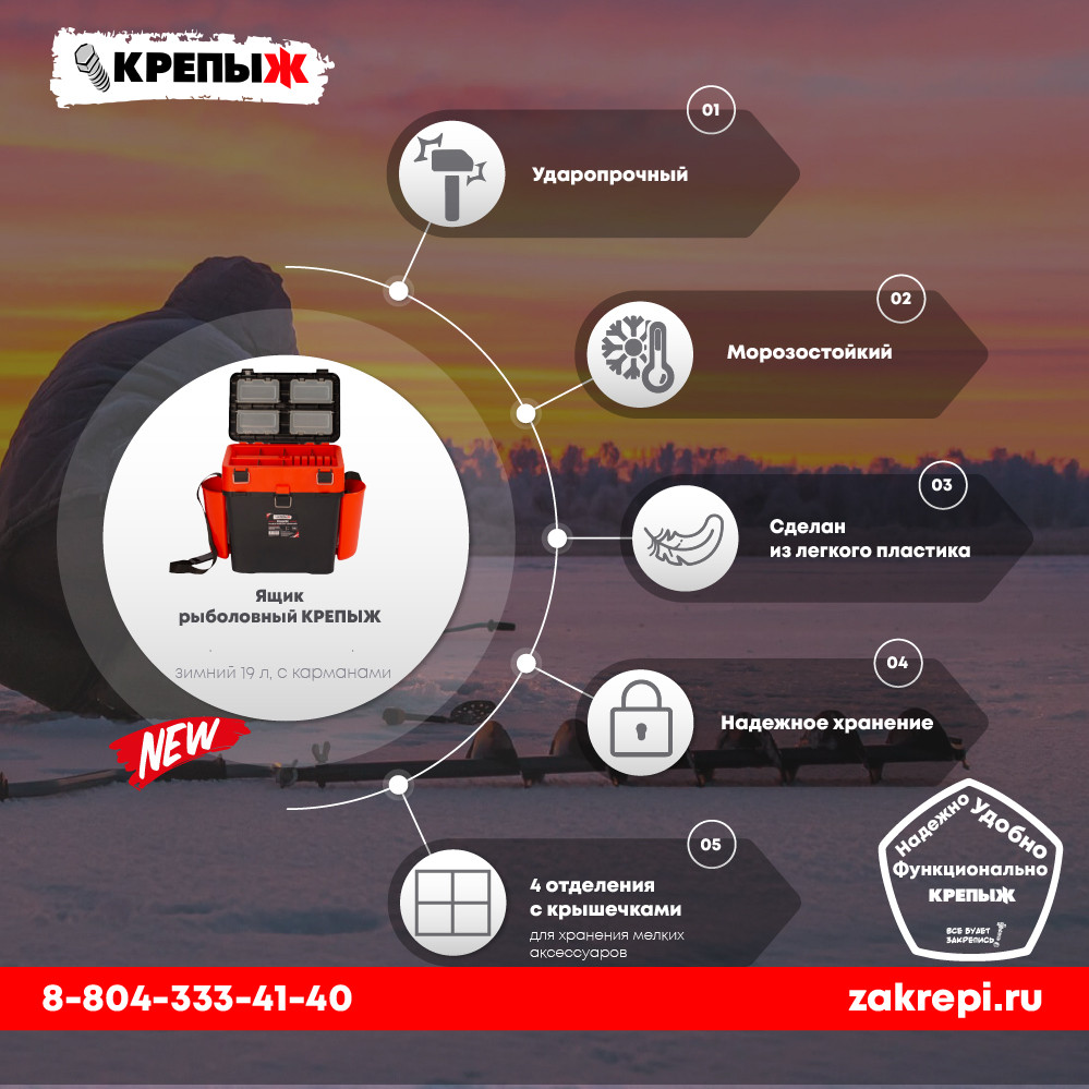 Ящик рыболовный зимний 19 л, черный/оранжевый с карманами КРЕПЫЖ