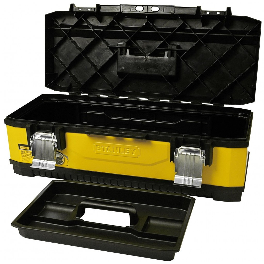 Ящик 26" Stanley 1-95-614 предназначен для хранения и транспортировки инструментов. Две металлические защелки надежно защищают от непреднамеренного открывания. Можно отдельно установить навесной замок. Такой ящик пригодится как профессионалу, так и домашнему мастеру: он позволяет держать инструменты и крепежные детали в одном месте и обеспечивает их сохранность. Сверху располагается переносной лоток для мелких деталей. Приспособление оснащено удобной ручкой с мягкими вставками, выполнено из прочных материалов.