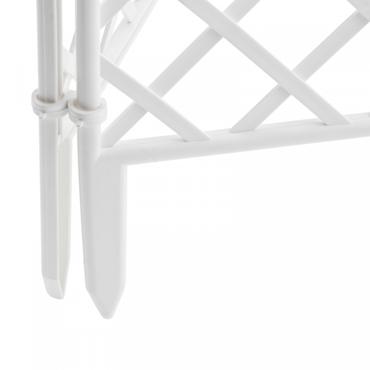 Декоративный забор Palisad «Сетка» 65021 белого цвета, размером 24 х 320 см, состоит из 7 секций и позволяет зонировать озелененный участок. С его помощью можно украсить дачную территорию — обозначить границы грядки или зоны отдыха, оформить клумбу, оградить кустарник или дерево.