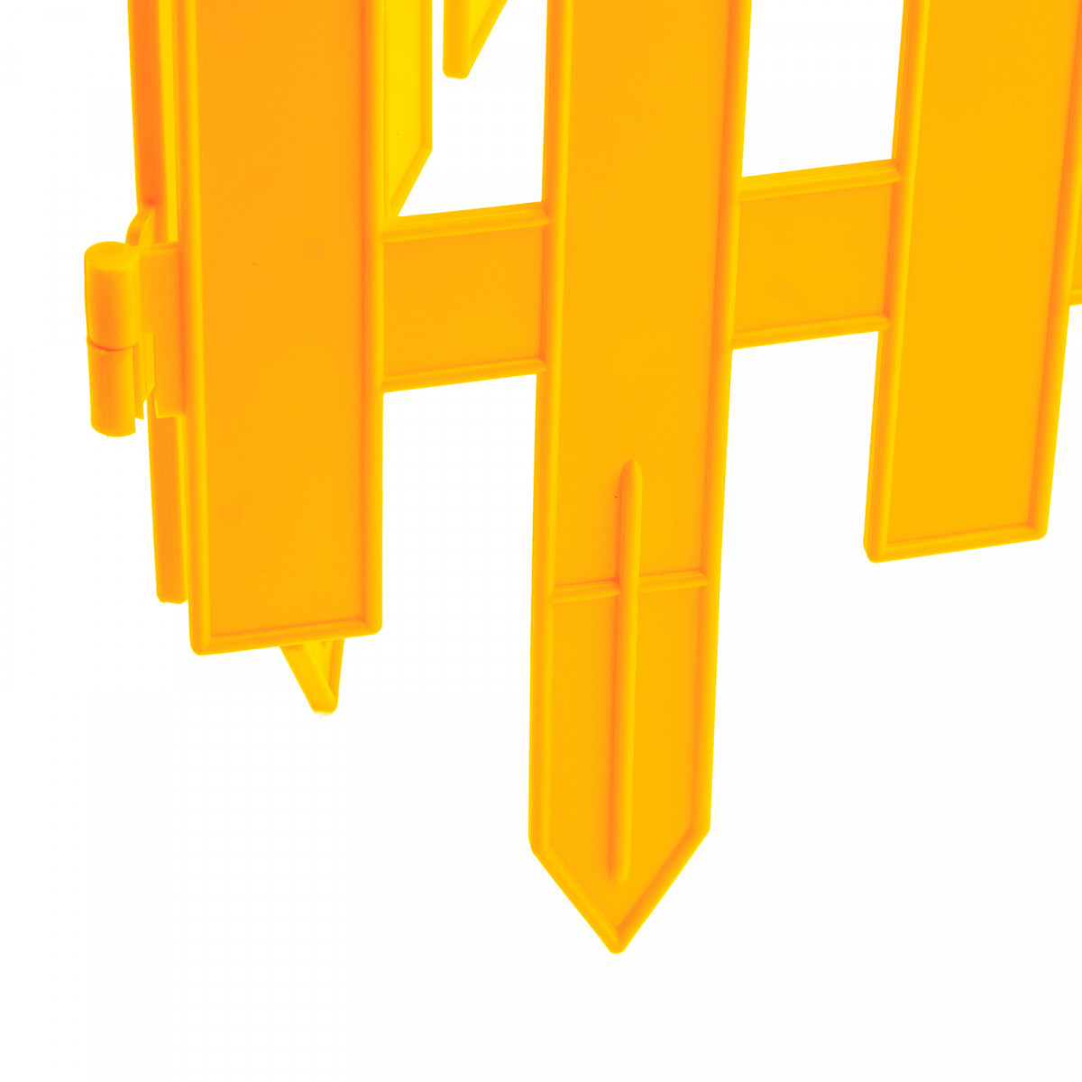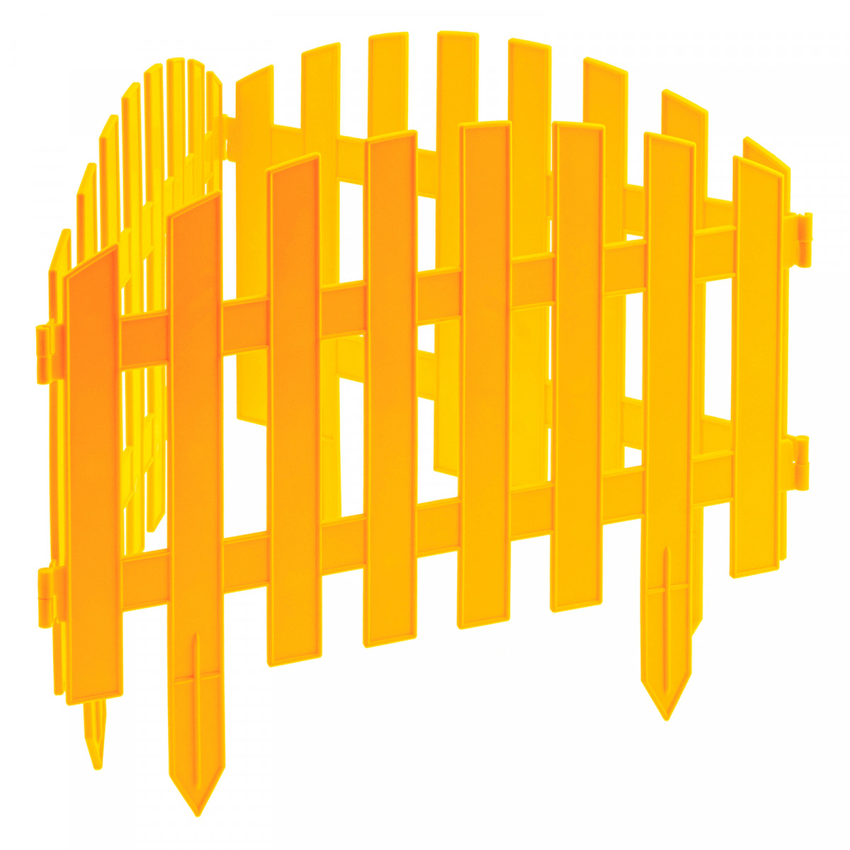 Желтый декоративный забор Palisad «Винтаж» 65010 размером 28 х 300 см, предназначен для зонирования территории. Состоит из 7 оригинальных секций общей длиной 300 см. С их помощью можно оформить клумбу, дорожку или зону отдыха, огородить грядки, деревья или кусты. Забор придаст законченный вид территории дачного участка.