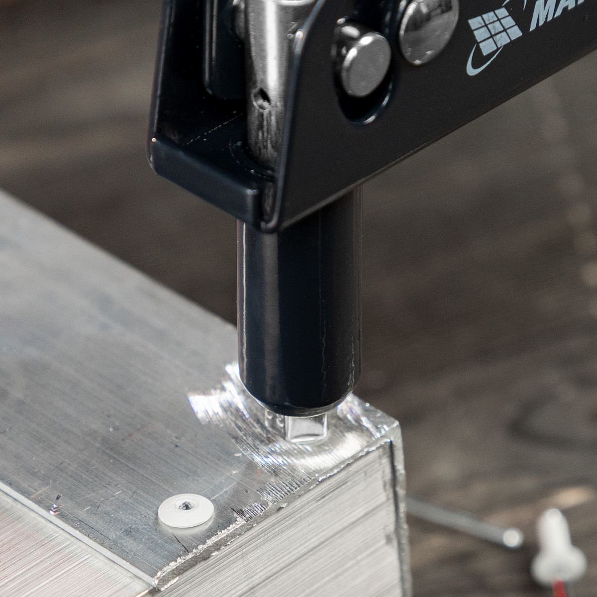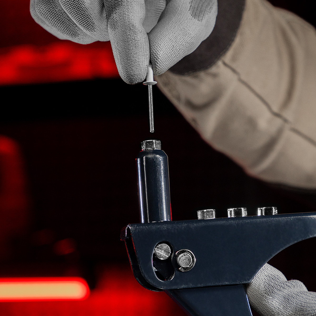 Заклепочник МАТРИКС 40515 длиной 225 мм используется с вытяжными заклепками диаметром от 2,4 до 4,8 мм. Инструмент применяется при работе с многослойным материалом и различными деталями из металла, пластика и т. д. В комплект входят сменные насадки для заклепок различного диаметра, фиксирующиеся на корпусе инструмента, поэтому их можно быстро менять при необходимости. Заклепочник будет полезен во время проведения строительных и ремонтных работ, пригодится также дома, в гараже или на даче., ,Преимущества,Прочность и долговечность — корпус выполнен из конструкционной стали.,Быстрая установка нужной насадки — в комплект поставки входит монтажный ключ.,Комфортная работа — рукоятки с рельефной поверхностью не выскальзывают из руки.,Удобное хранение — металлическая скоба надежно фиксирует рукоятки в нерабочем состоянии.