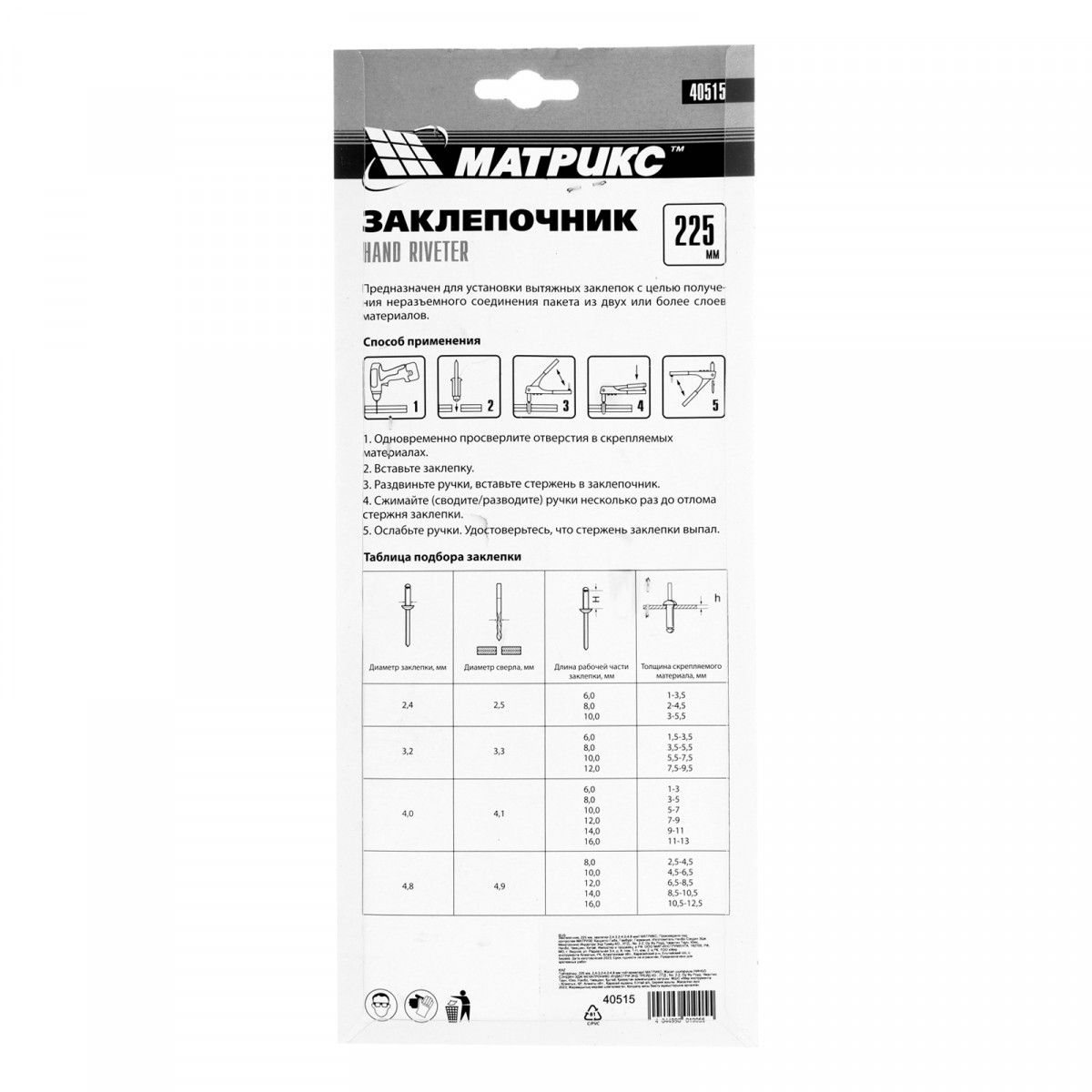 Заклепочник, 225 мм, заклепки 2.4-3.2-4.0-4.8 мм Матрикс