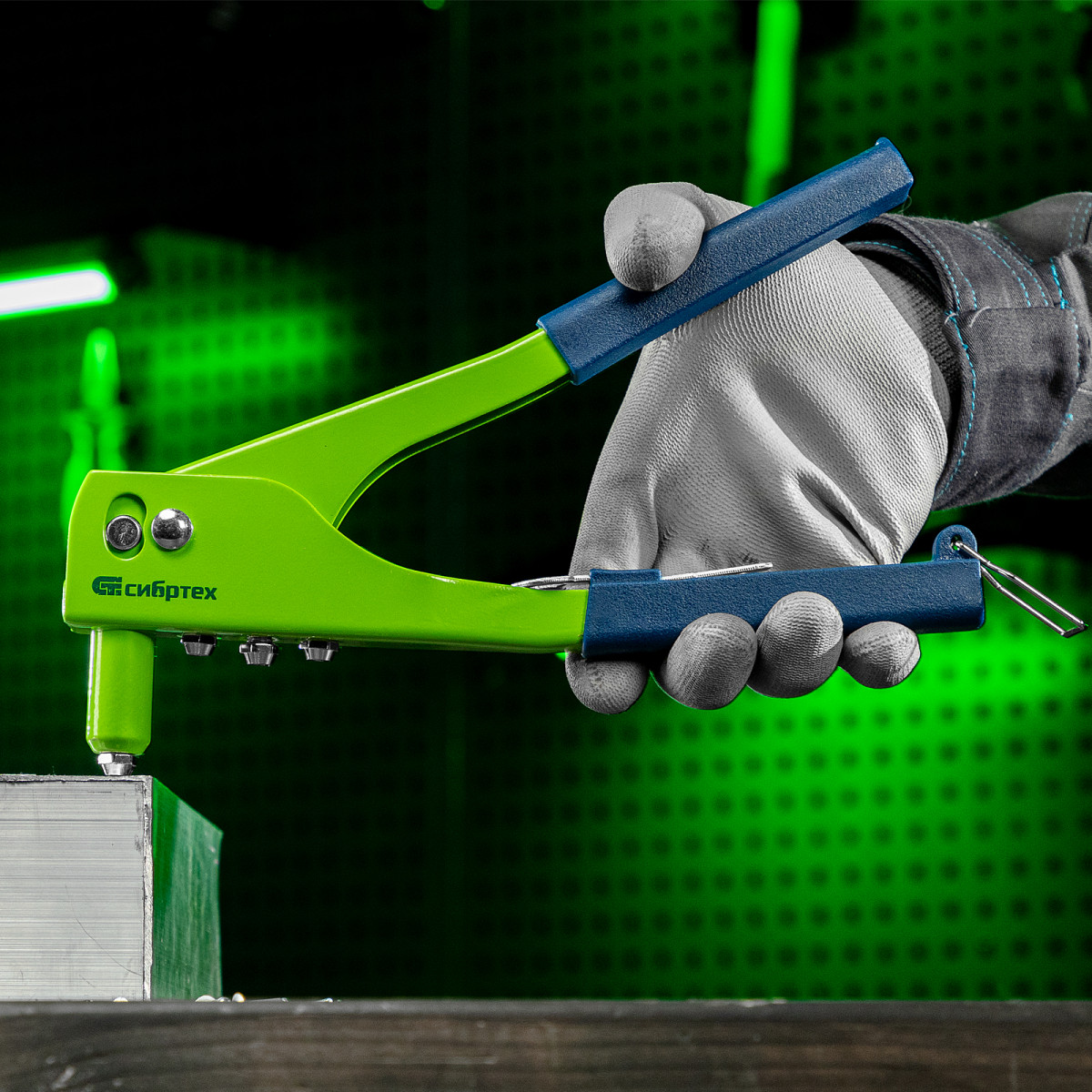 Заклепочник Сибртех 40541, 260 мм, рассчитан на скрепление листовых металлических заготовок при помощи вытяжных заклепок 2,4-3,2-4,0-4,8 мм. Он обеспечивает быстрое и прочное соединение материалов. Заклепочник предназначен для непрофессионального применения, пригодится при проведении строительных и ремонтных работ.