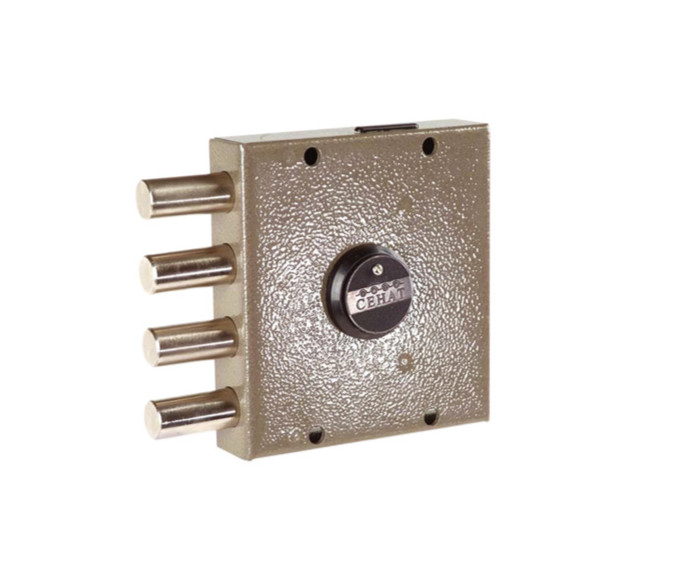 Замок накладной сувальдный. Предназначен для установки на металлические двери. Засов из четырех цилиндрических ригелей диаметром 18,5 мм, с максимальным вылетом 40 мм. Удаление ключевого отверстия - 64 мм. Количество полуоборотов ключа - 4. Габариты замка - 135х146х32,5 мм. Защита от вскрытия замка отмычкой, защита от высверливания стойки ригеля и защита от вскрытия методом проворота.