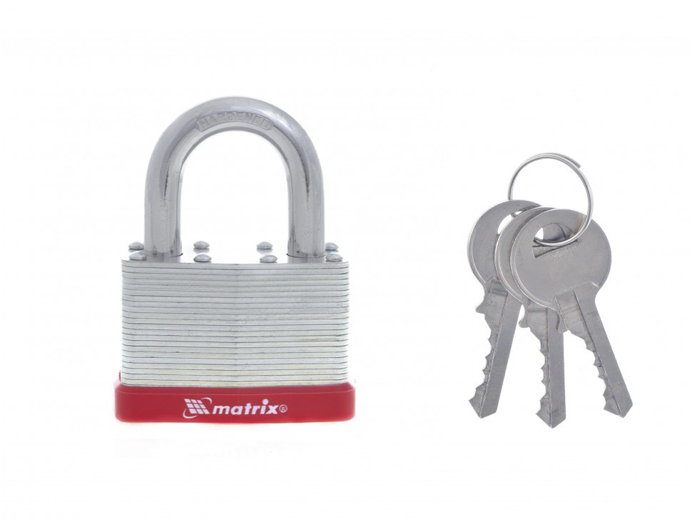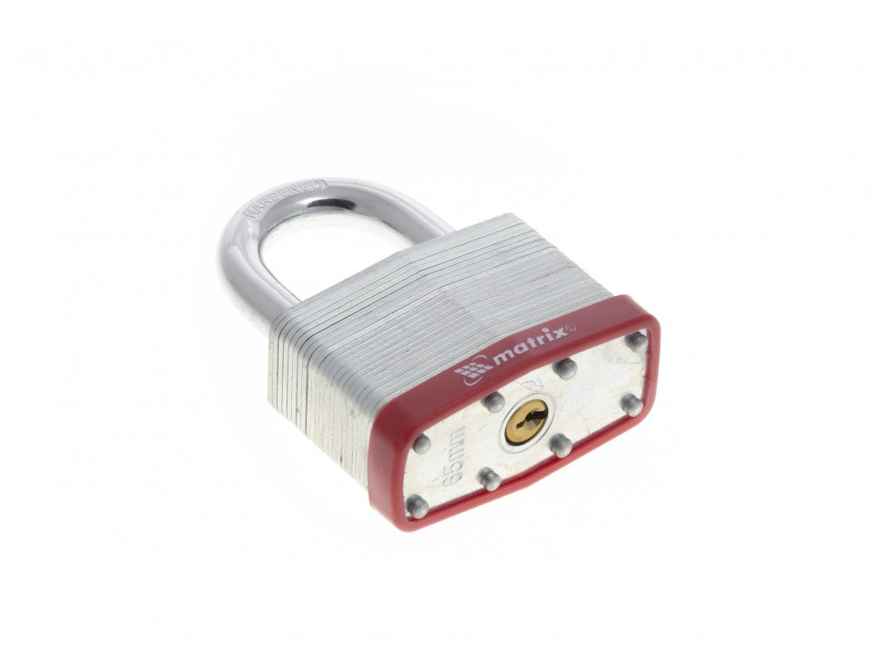 Навесной замок Matrix 91808 шириной 65 мм служит для обеспечения безопасности помещения и ценных вещей. Его можно повесить на ящик, дверь гаража, подсобки, склада, сарая, шкафчика и т.д. Дужку диаметром 9 мм сложно сбить или перекусить.