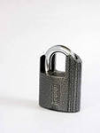 Замок навесной для бытовых, складских помещений. Материал корпуса чугун, покрытие - полимерная краска. Ширина – 50 мм. Дужка – закалённая сталь, закрытая корпусом у оснований. 4 дисковых ключа, защита механизма от высверливания.
