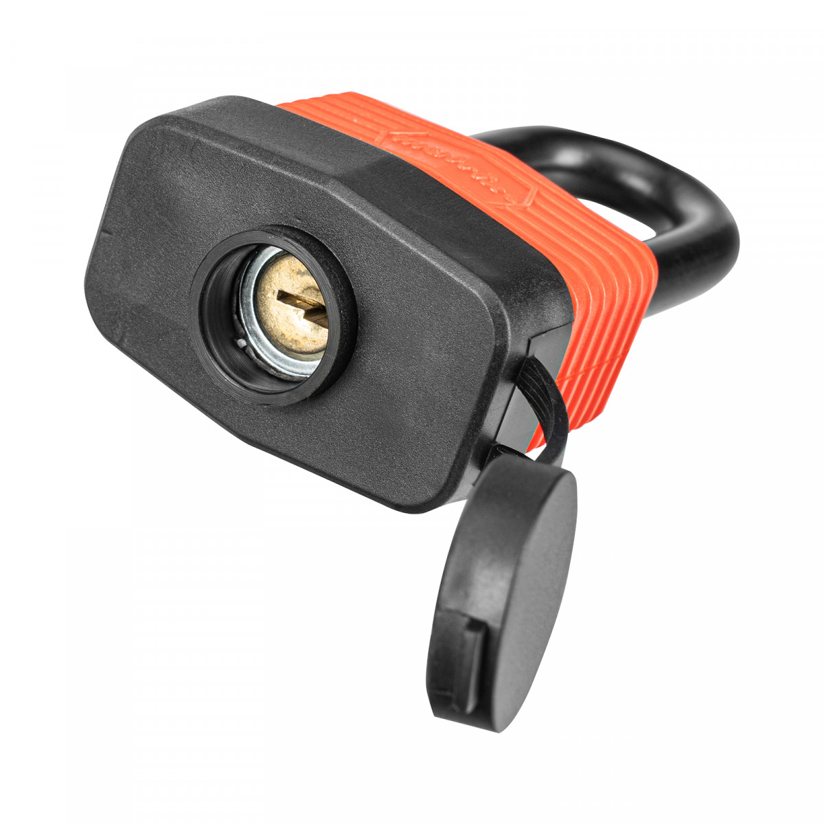 - Взломостойкость — благодаря закаленной стальной дужке и стальному корпусу сложной конструкции замок трудно вскрыть.