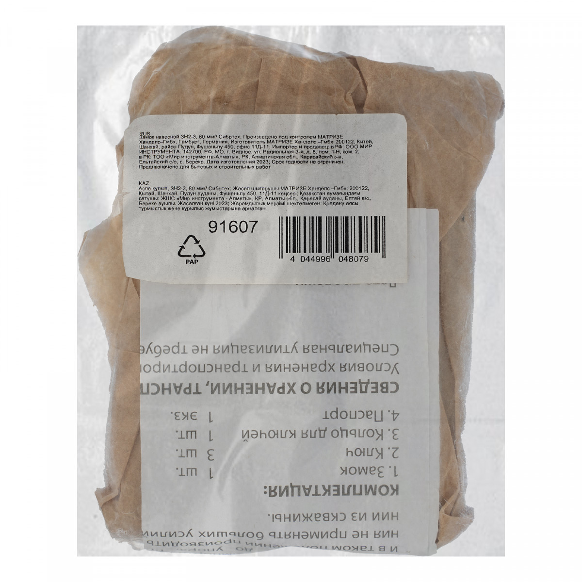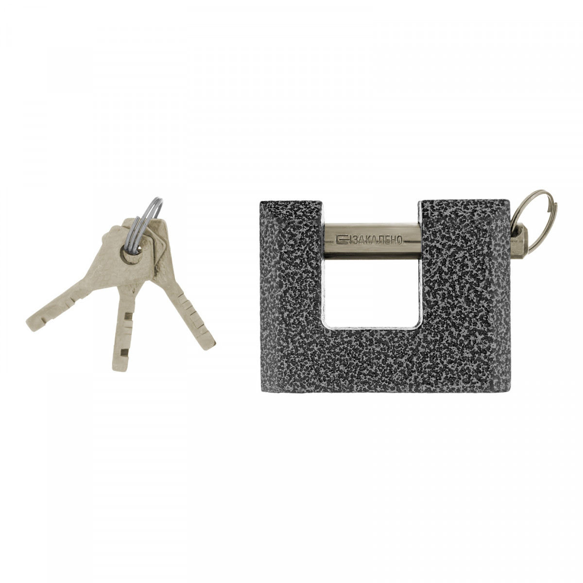 Навесной замок Сибртех ЗН2-3 91607 шириной 80 мм предназначен для защиты помещений от несанкционированного доступа. Запирающий палец толщиной 12 мм наполовину скрыт в корпусе, поэтому замок устойчив к механическому взлому. Он подойдет для установки на калитку, дверь гаража, сарая, склада или жилого помещения.