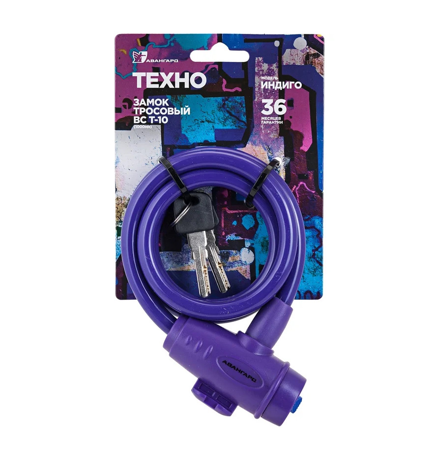 Замок велосипедный тросовый Авангард ВС-Т10 (1м) ТЕХНО ИНДИГО