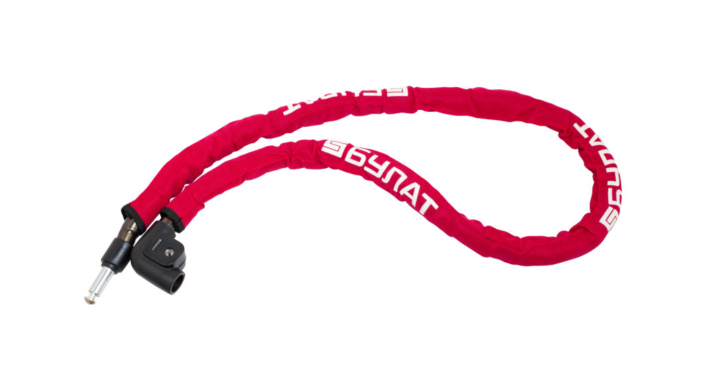 Трос замка выполнен из стали, усилен внешними стальными звеньями круглого сечения для защиты от перекусывания.