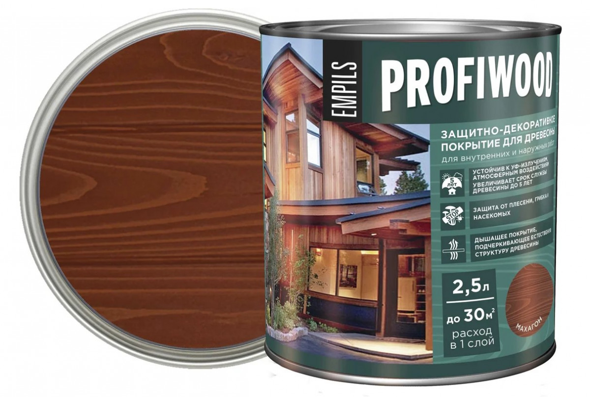 Защитно-декоративное покрытие для древесины PROFIWOOD махагон 2.3 кг Сп.