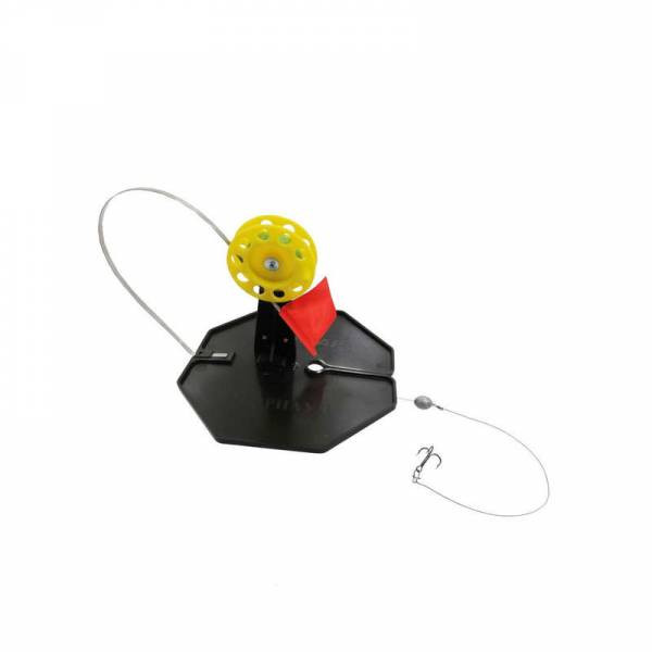 Усиленная стойка катушки. Винт позволяет осуществлять регулировку вращения катушки. Надежная пружина флажка-сигнализатора изогнута у основания и полностью готова к применению.Оснащенные жерлицы сразу после покупки готовы к ловле.