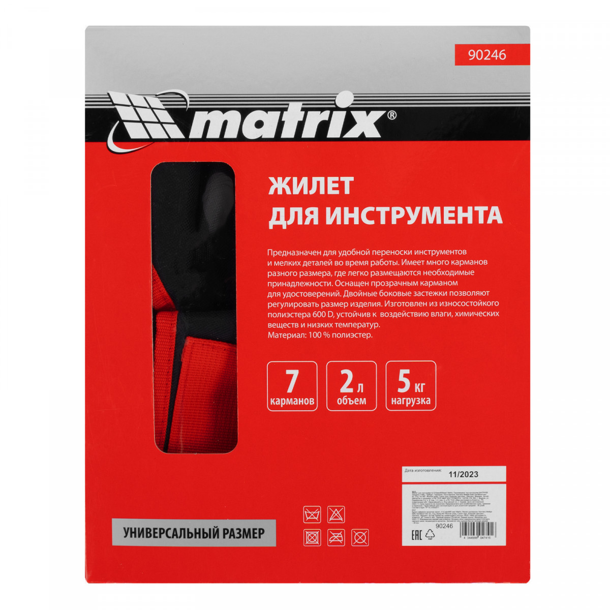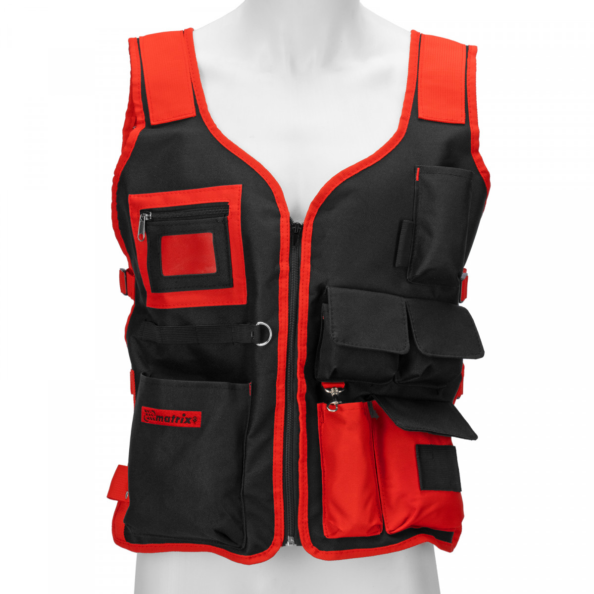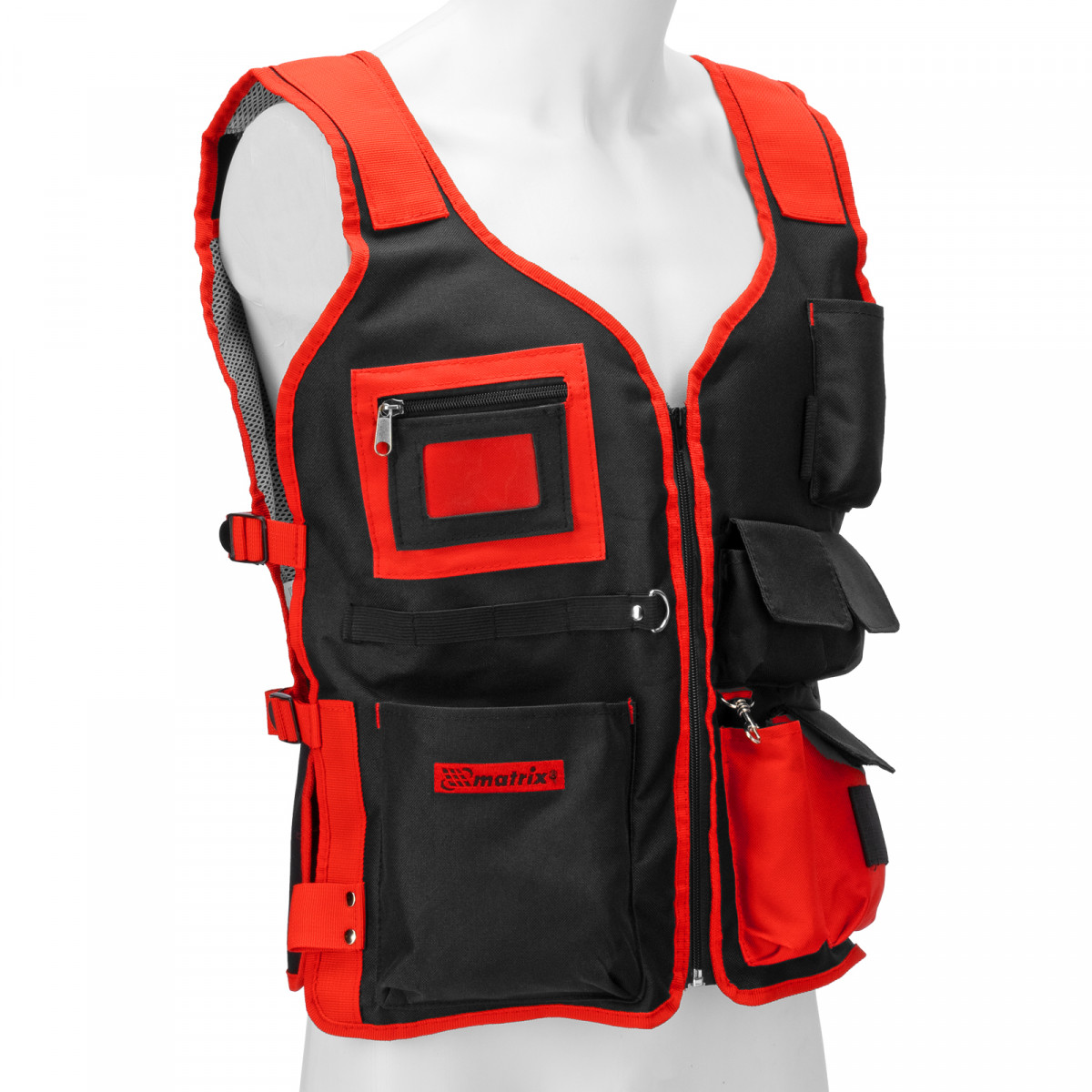 Жилет Matrix 90246 размером 510 х 600 мм предназначен для размещения инструментов. Позволяет освободить руки, особенно удобен для работы на больших объектах и на высоте. Жилет пригодится профессиональному строителю, слесарю, монтажнику, а также частному мастеру.