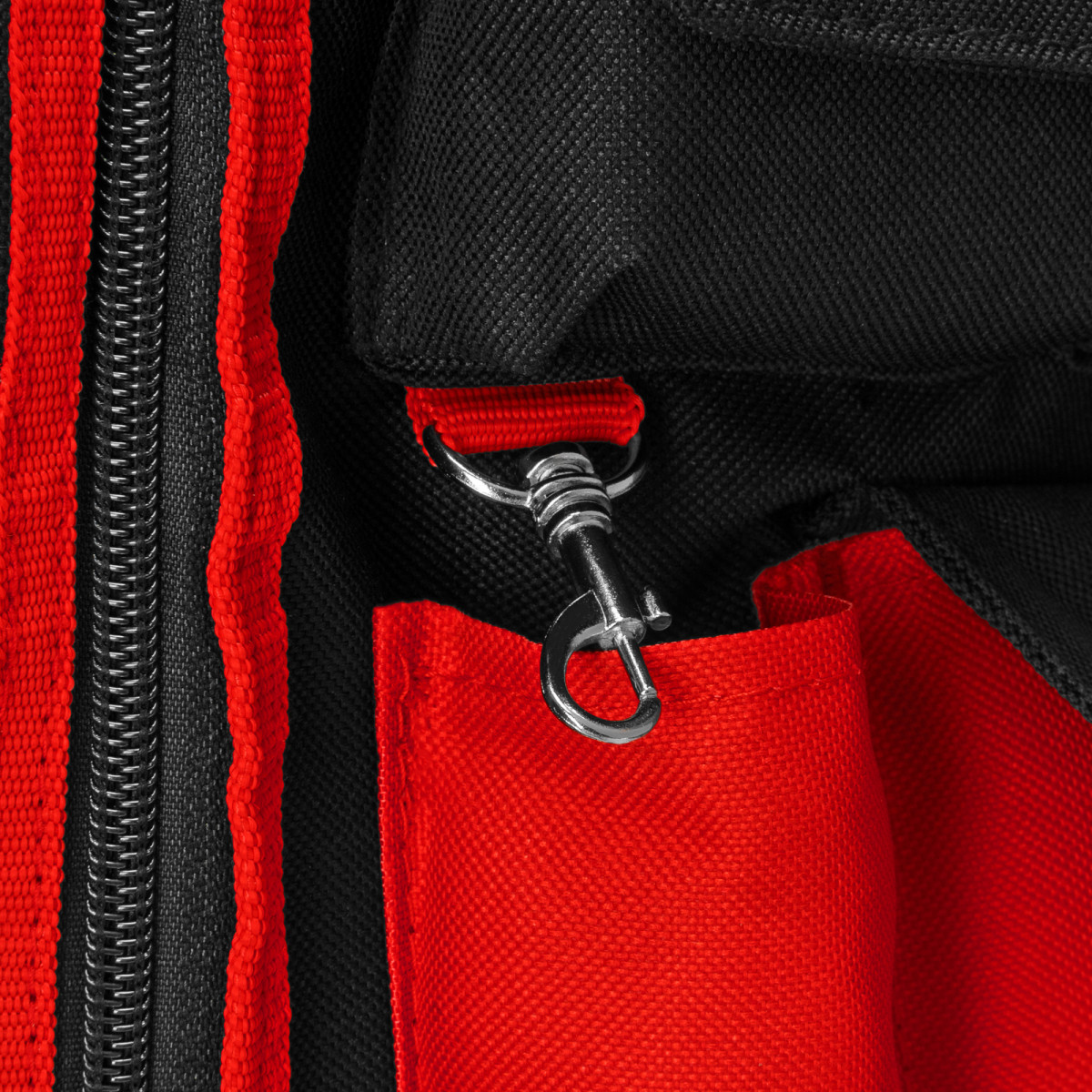- Многофункциональность — в 8 карманах разного размера можно разместить инструменты, детали, карандаши и другие предметы, а прозрачный нагрудный карман удобен для хранения пропуска.