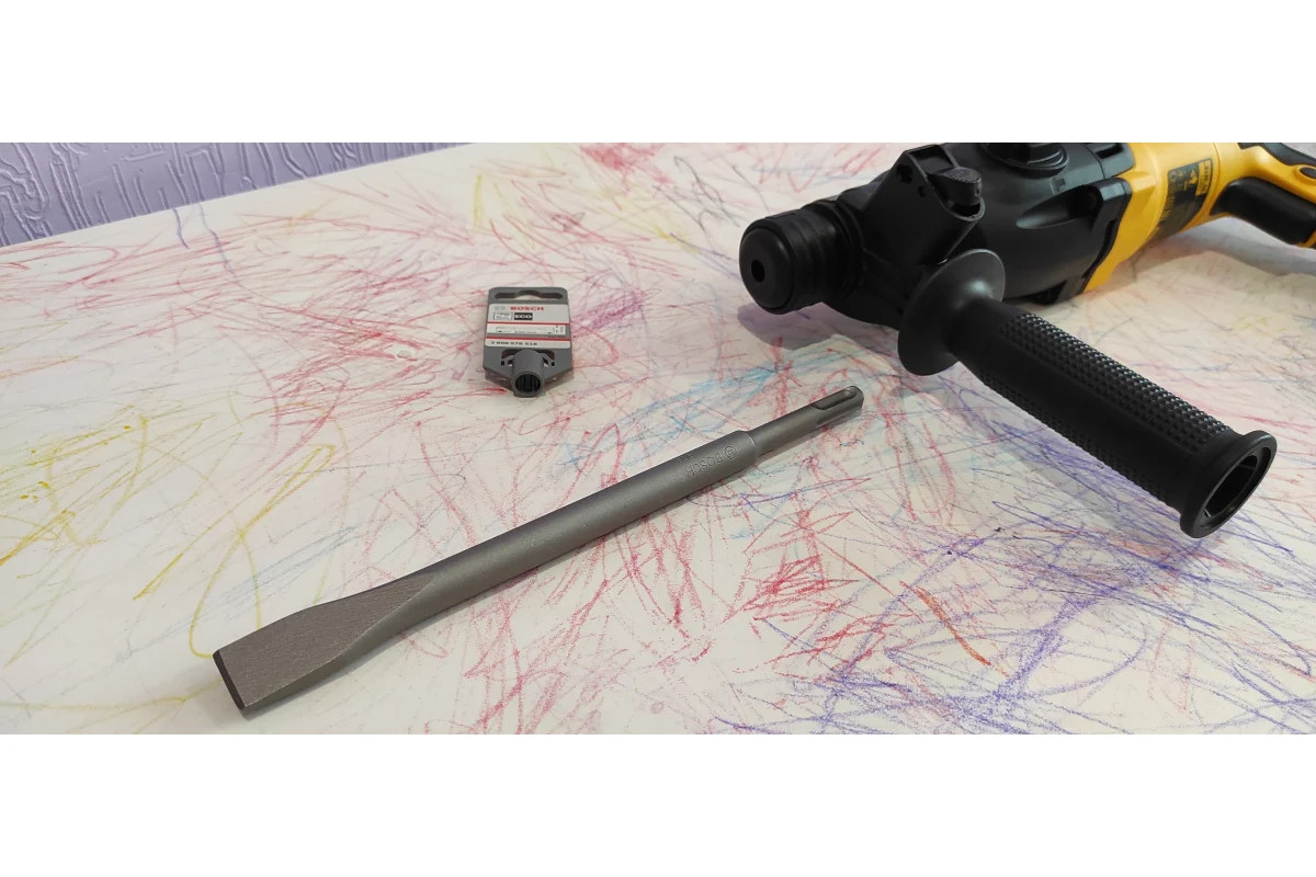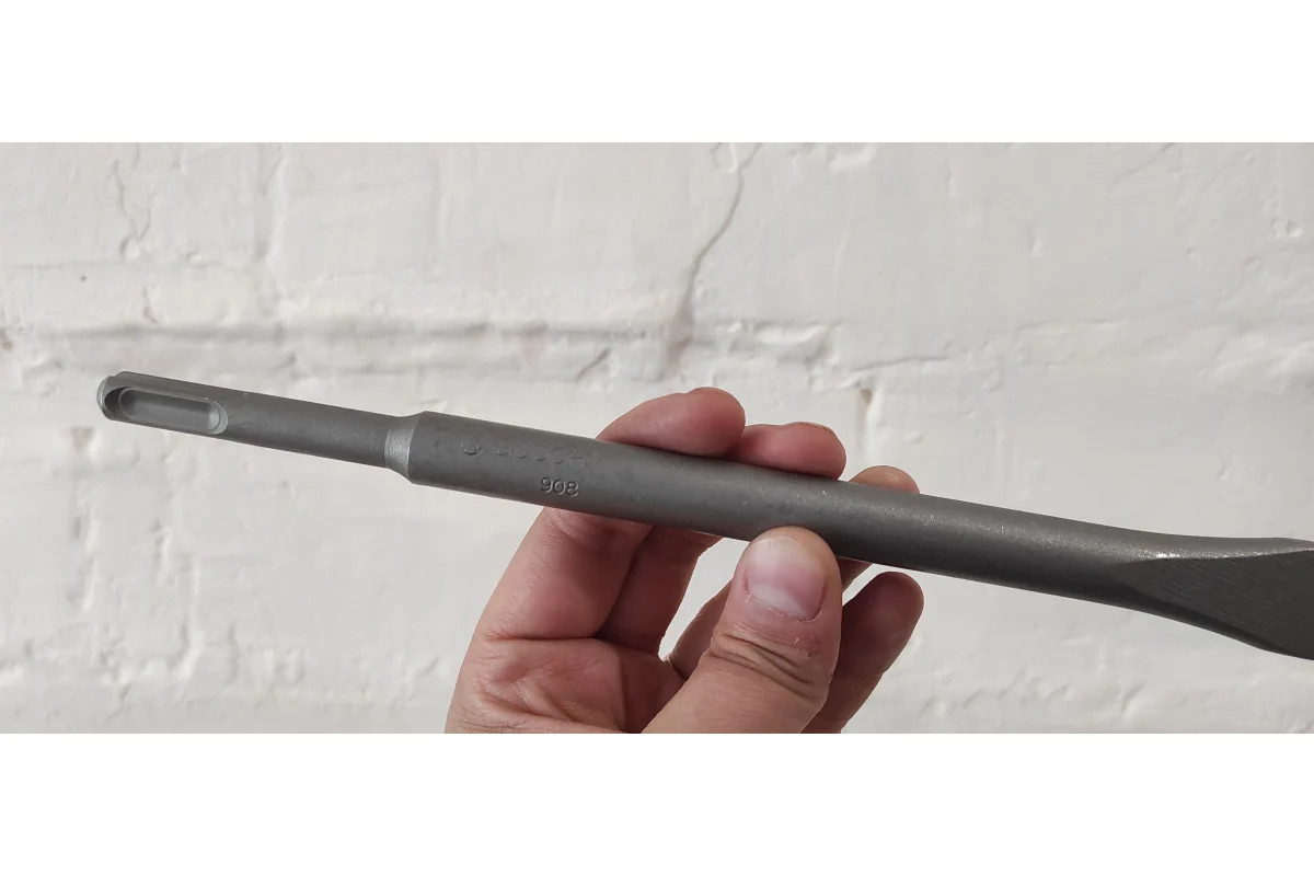Высокая прочность зубила за счет формы наконечника и материала SDS-plus.